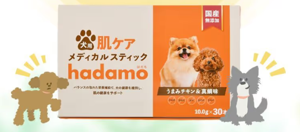 そんな悩みを、薬に頼らず「おやつ感覚」でケアできるのが、犬用メディカルスティック hadamo(ハダモ)です。