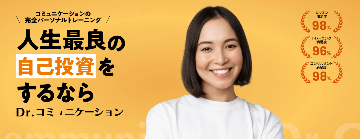 コミュニケーション能力は、仕事でもプライベートでも、人生の質を左右する重要なスキルです。しかし、独学での習得は難しいもの。【Dr.Communication(ドクターコミュニケーション)】は、プロのコンサルタントによる完全マンツーマンレッスンを通じて、受講生一人ひとりに最適なコミュニケーション能力を短期間で身に着けることを目的とした、日本最大級のコミュニケーションスクールです。