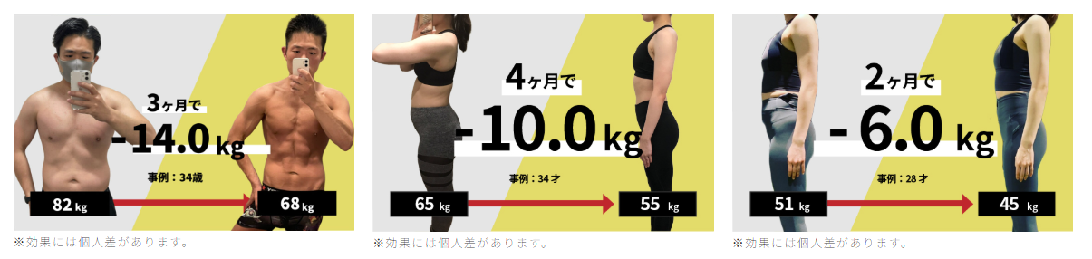 大会優勝者が指導するメソッドにより、短期でしっかりと目に見える効果を出しつつ、無理のない食事管理で長期的な健康維持のための運動習慣を同時に身につけることができます。リバウンドしにくい体づくりが可能です。